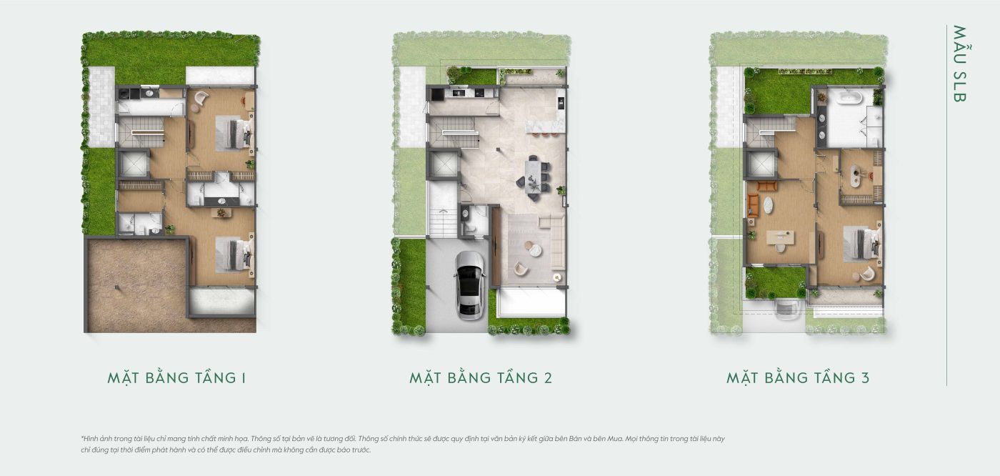 - Tổng diện tích sàn dụng từ 343m2 đến 381m2