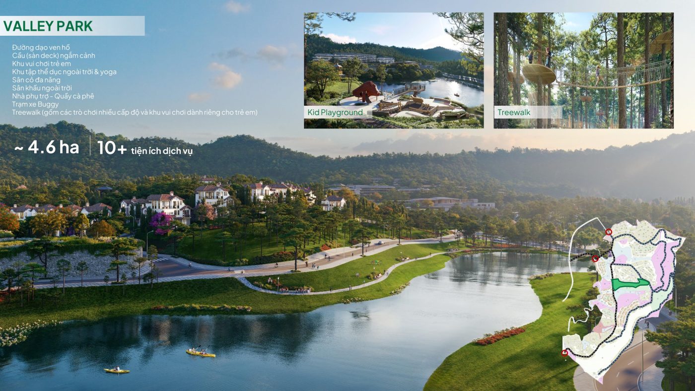 Trong đó phân khu đầu tiên được ra mắt là phân khu Valley Park Residences 30ha ngay tại trung tâm dự án với 173 biệt thự sở hữu lâu dài.