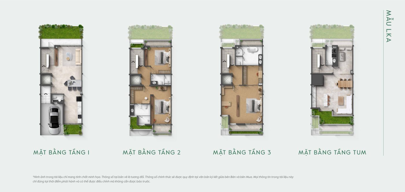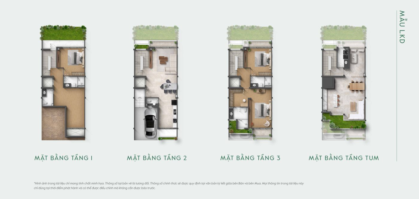 - Tổng diện tích sàn dụng từ 343m2 đến 381m2